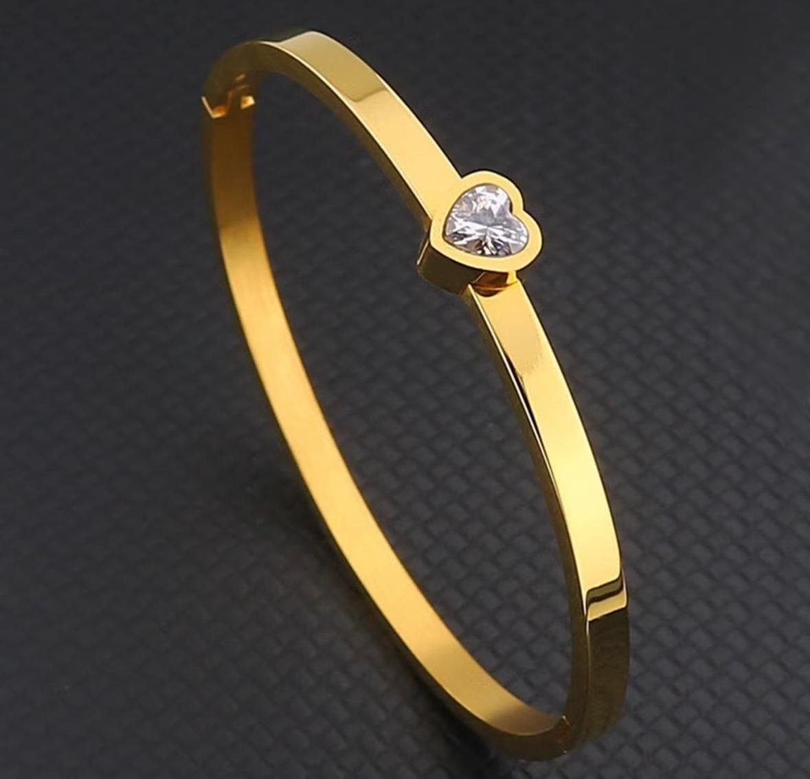 Anti tarnish heart cuff or bangle bracelet