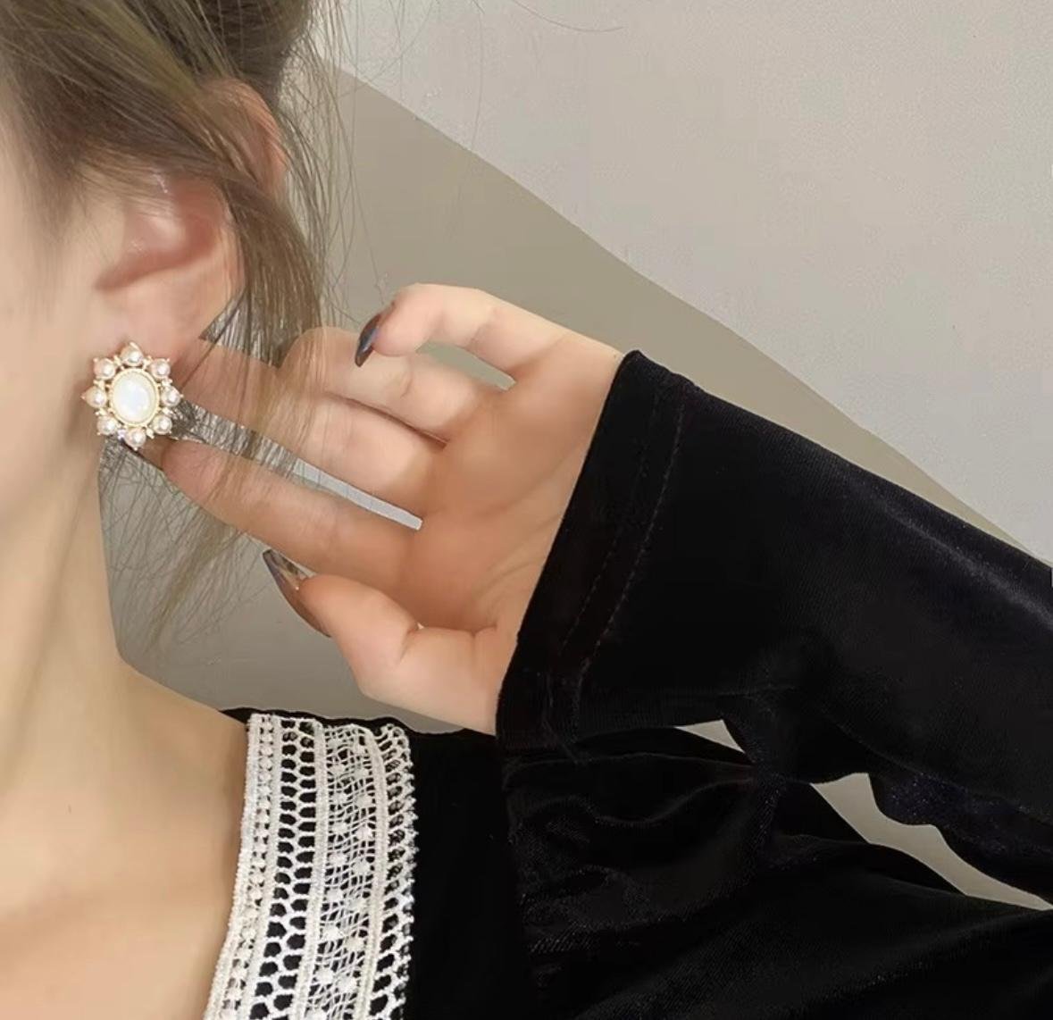 Be the first to review “Central oval stone by small pearls stud”