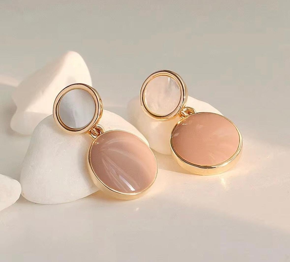 Drop earrings with pink enamel