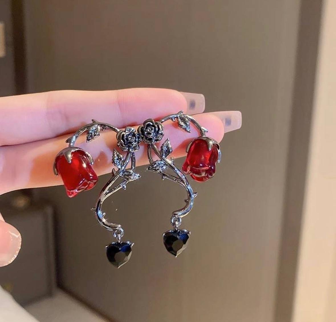 Be the first to review “Gothic red rose tassel earrings”