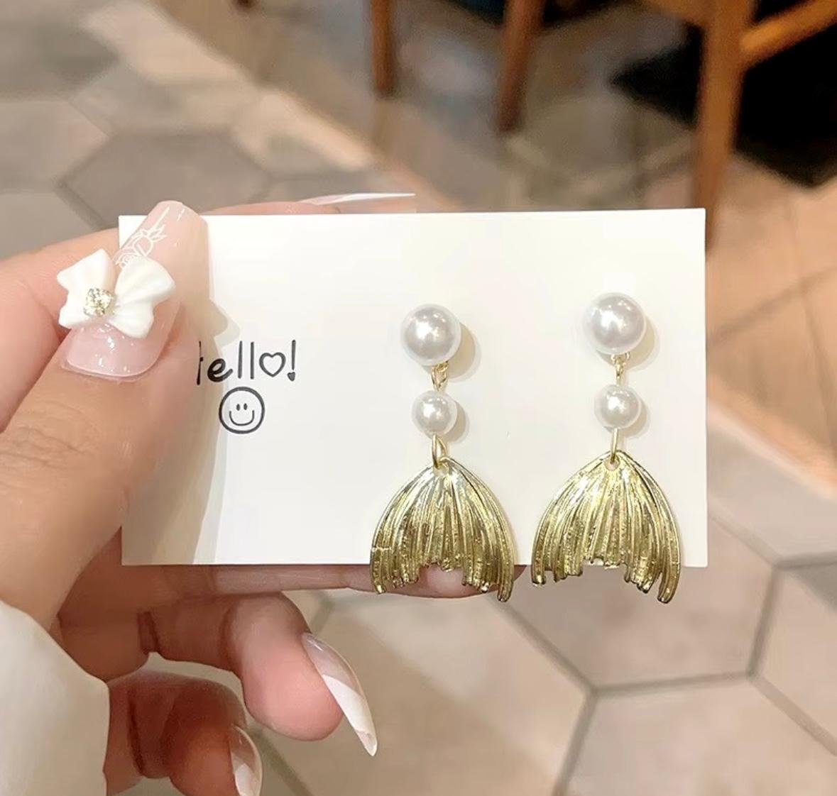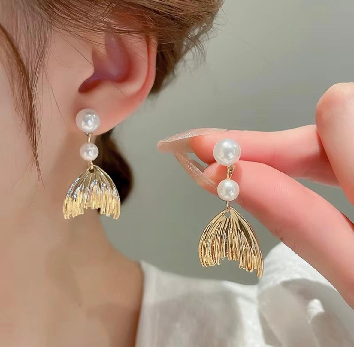 Mermaid tail pearl dangle earrings