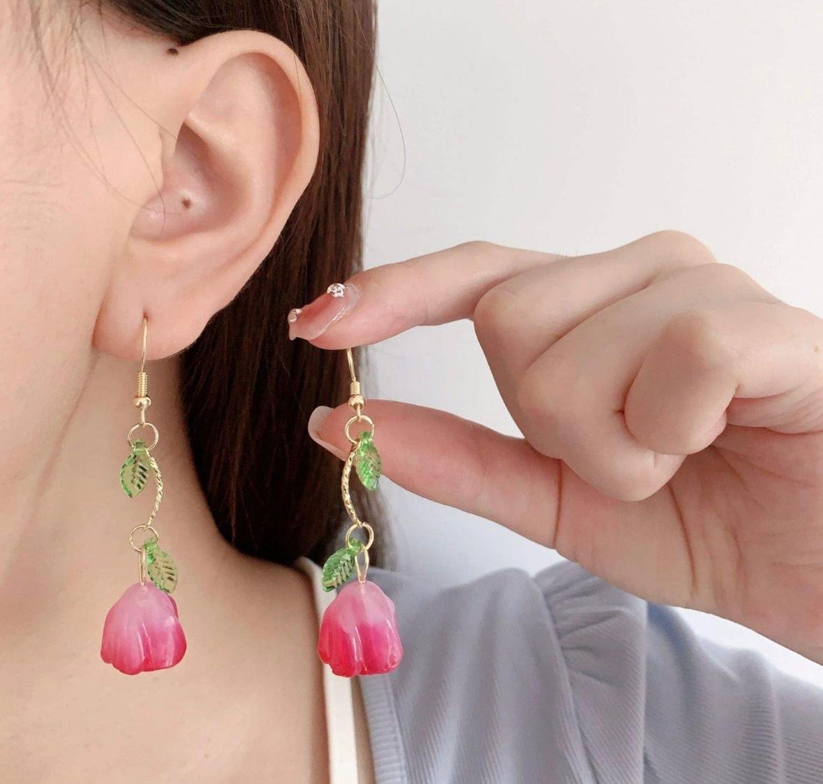 Be the first to review “Pink tulip drop earrings”