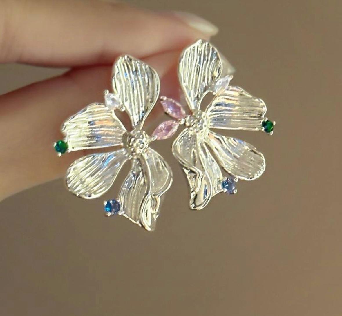Silver toned floral brooches stud