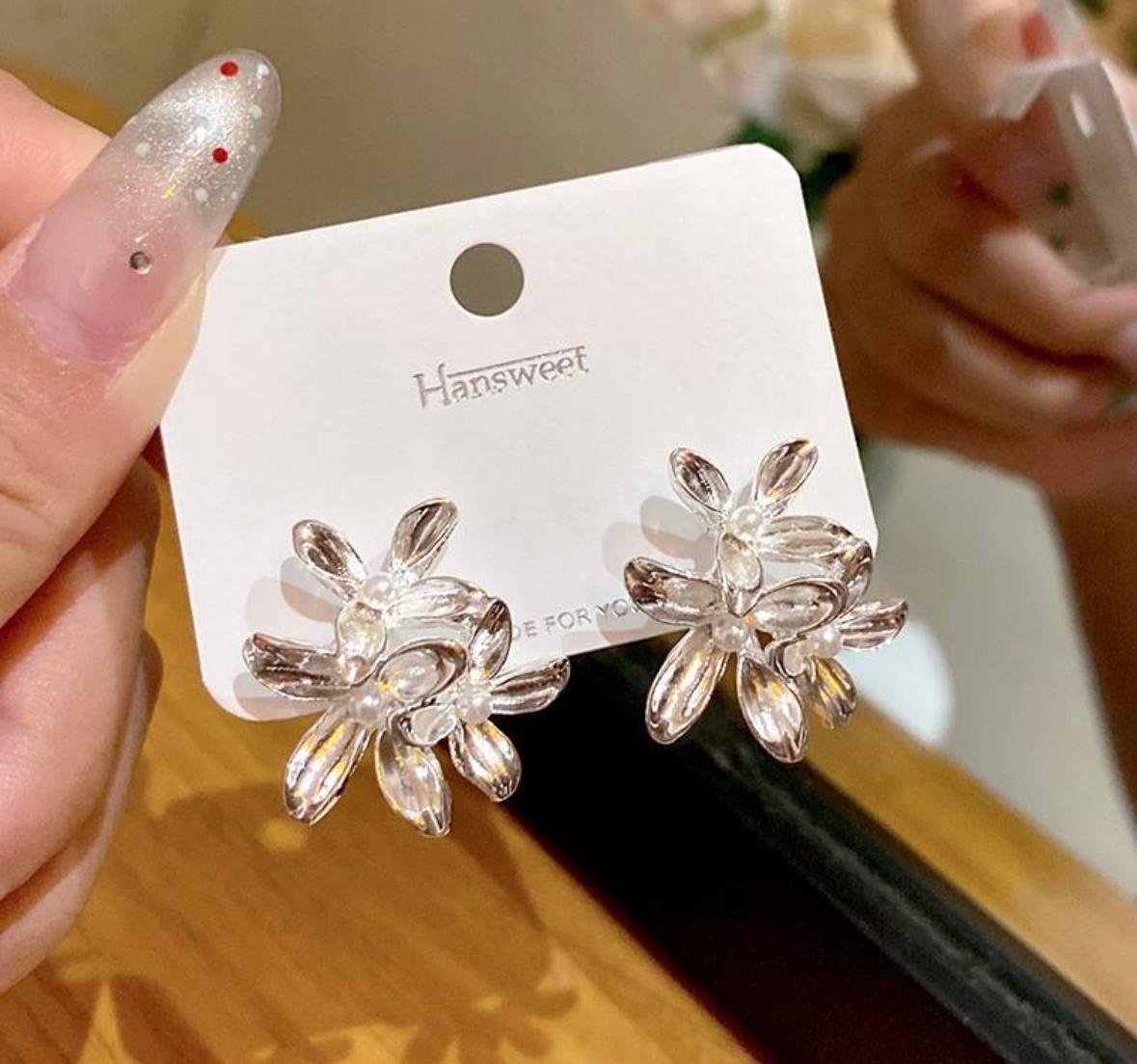 Silver toned metal flower stud