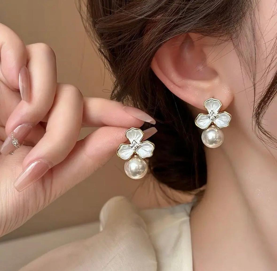 White floral pearl earrings